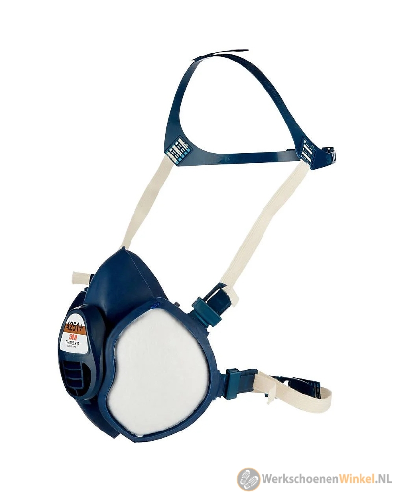 Het 3M 4251+ onderhoudsvrije halfgelaatsmasker is een volledig, gebruiksklaar ademhalingsmasker met geïntegreerde filters.