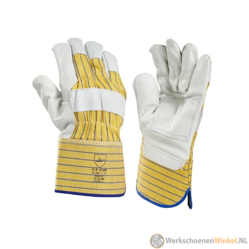 De Werkhandschoen 1014VW met rundnerfleder en palmversteviging geel/wit is een stevige en duurzame werkhandschoen, ontworpen voor taken waarbij grip, veiligheid en slijtvastheid belangrijk zijn. De versteviging aan de handpalm van de rundnerfleder biedt extra weerstand tegen slijtage en verlengt de gebruiksduur. Door de solide opbouw beschermt de handschoen goed tegen wrijving en lichte mechanische risico's, terwijl de flexibele pasvorm comfortabel blijft ook tijdens langdurig gebruik. Deze werkhandschoenen combineren betrouwbaarheid en gebruiksgemak en zijn daarmee een uitstekende keuze voor professionals die hoge eisen stellen aan hun persoonlijke bescherming.